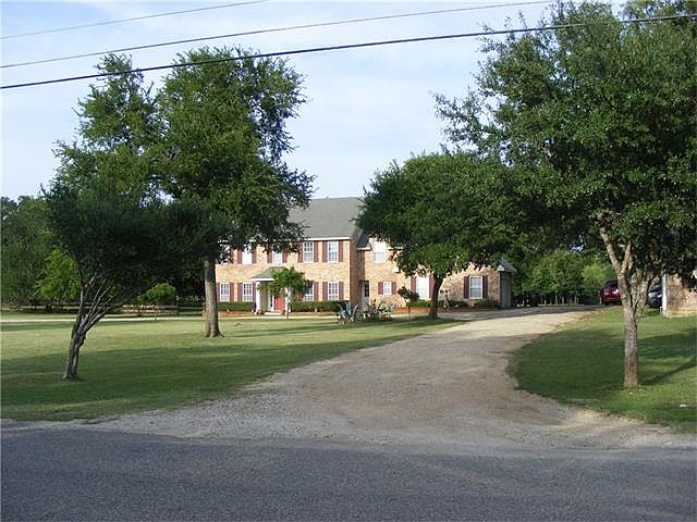 Sizeable 2 Story with 4 bedrooms on 2.5 Acres in Hays Country Oaks! Circular Driveway, side entry Oversized 2 car garage. French doors, Pocket doors, Spacious kitchen with Island & Built in appliances! Master & other 3 bdms Up, and Large Game room with French Doors to Balcony view of backyard!Downstairs has a 5th Room could be Office/Den or ? Home has Formal Dining and Formal Living areas, and Roomy Family room off Kitchen/lots of Light! Huge Shade Trees!Entertaining wood patio decking!Private well!
