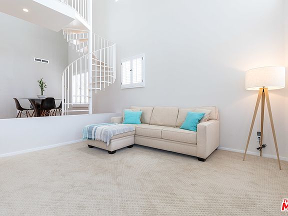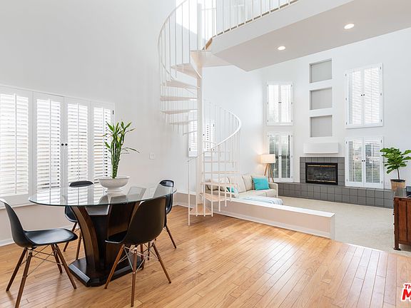 Stunning architectural penthouse corner front facing condo with a wall of large windows letting in an abundant amount of natural light and peek a boo ocean views. Open floor plan for entertaining with expansive 15 foot vaulted ceilings two bedrooms plus a bonus loft, studio, office or third bedroom. Balconies from ensuite master and loft for great views and see the ocean and July 4th fireworks display. New appliances, shower doors, new ceiling lighting, new water heater, recent kitchen and bath updates. Hardwood floors in dining, kitchen and well sized guest bedroom. Washer and dryer in the unit, central ac and two parking spaces with extra storage and bike storage. Gated entry and spa in the courtyard. HOA dues include earthquake insurance. Great location walking distance to Palisades Village, Temescal Canyon hiking, Palisades High School and a couple of minutes drive to Will Rogers State Beach.