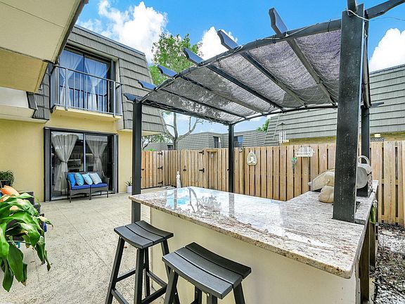 Beautifully updated 2BR/2.5BA townhouse offering 1,236 sq. ft. with updated kitchen, remodeled bathrooms, 2 year old water heater and updated flooring throughout. Spacious primary suite features private balcony, a walk-in closet and updated master bathroom with dual sinks, & modern separate shower, while the second bedroom has also its own bathroom, large closets and private balcony as well. Enjoy a large fenced patio, with outside kitchen area, accordion shutters, and newer roof (2018). HOA includes cable, water, exterior, roof & more. Community amenities: pools, tennis, playgrounds, dog park & fitness trails. Conveniently located near shopping, dining, I-95 & downtown West Palm Beach. Pet friendly & water and cable included with HOA!