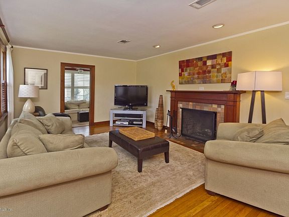 Lovely all brick San Marco 3/2 bungalow with large updated kitchen (newer appliances, 42"cabinets and granite, w/wine chiller); nice LR fireplace, gorgeous hardwood floors, bright sunroom, cool architectural features, large attic with pull down stairs, comfortable back patio, new oversized 2-car garage, new driveway, newer roof, HVAC and windows, indoor laundry, 150' deep lot. Floorplan on file. Very close to San Marco Square and in Hendricks Avenue Elementary school district *Must see*