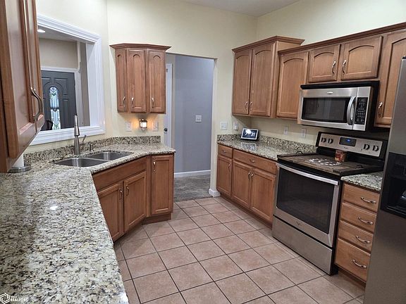 From the moment you arrive, the charming front porch welcomes you as you enter this ranch-style home offering comfortable living with modern touches throughout. Enjoy an extra-large living room featuring a cozy gas fireplace, perfect for relaxing or entertaining! The kitchen is equipped with granite countertops, stainless steel appliances, ample counter space, and a convenient pantry for all your storage needs. The main floor also includes a primary bedroom with a walk-in closet and a private attached full bath, complete with double sinks and a beautifully tiled shower. Two additional well-sized bedrooms are located on the main level, along with a main floor laundry room that includes a washer and dryer for added convenience. Downstairs, the partially finished lower level provides additional living space - including a family room, a 4th bedroom with an egress window, and another full bath - offering plenty of flexibility! At the rear of the home, the concrete patio provides an ideal space for outdoor dining, entertaining, or simply unwinding after a long day. The oversized two-car attached garage provides extra room for storage or projects and also has an EV Tesla charging station.