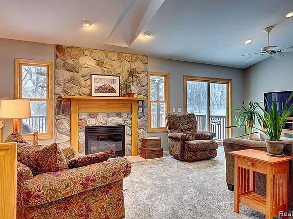 Exceptional ranch home in the Millpointe of Hartland subdivision.Lovely east west orientation backing to association woodlands. Anderson windows throughout and three sky lights. Butted Casings over the interior doorways and some windows. Custom built in storage in all bedroom closets, bay window cabinetry and master bath closet. Updated light fixtures throughout the home 2019- 2020. New paint in designer colors, new carpet 2020.Kitchen is updated: quartz countertops, undermount stainless sink, gas stove 2016 (electric connection as well), new refrigerator and dishwasher 2019. Kitchen Pantry has laundry connections. Bosch, LG and Meile .Full wall stone gas fueled fireplace in the great room .Expansive deck overlooks open area with Pergola.Lighted stairwell to the full finished walk out basement has third full bath, 4th bedroom, lower level laundry, bar sink and custom built in cabinetry. HVAC replaced in 2009- electronic air filter, humidifier & home reinsulated in 2010.