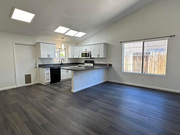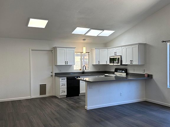 Open designRemodeled kitchenClassic white shaker cabinetsHiking and biking trailsSun-filled skylightsQuartz countersVaulted ceilings