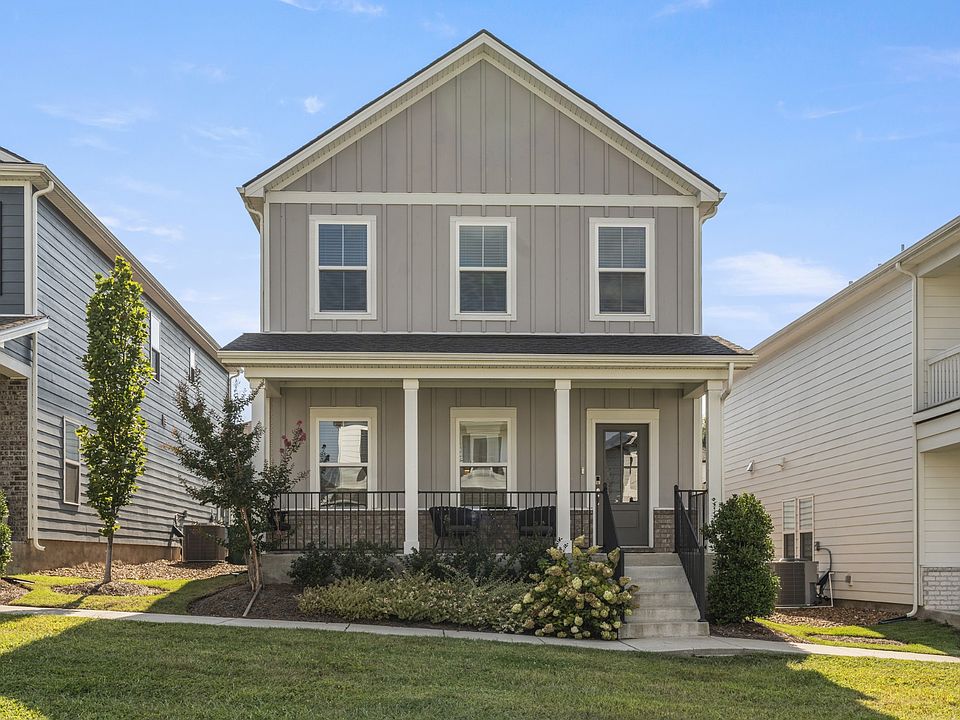 This like-new 2023 built home offers the perfect blend of modern design, smart features, and family-friendly living. With 5 bedrooms, 3 full bathrooms, and a thoughtful floor plan, this home has space for everyone. The main level features a guest bedroom and a full bath, ideal for visitors or a private office. The open-concept kitchen is the heart of the home, showcasing a large island, stainless steel appliances, smart thermostats, and a spacious walk-in pantry. Hardwood floors flow through the entry, living, dining, and kitchen areas. Upstairs, the primary suite impresses with two oversized walk-in closets, a large stand up tiled shower, double vanities, and a linen closet. Three additional bedrooms share another full bath with dual sinks, while a bonus flex space makes the perfect playroom, media nook, or second living area. A true laundry room with storage and multiple closets throughout add to the home’s abundant storage. Enjoy evenings on the large covered front porch overlooking a peaceful green space; no cars pass by, only neighbors strolling the sidewalks and kids playing safely out front. The rear-entry garage and driveway keep the streetscape charming and quiet, enhancing the front-porch lifestyle. This vibrant community offers sidewalks throughout, plus a clubhouse and resort-style pool for summer fun. With spray foam insulation, smart thermostats, and a two-car garage, this home pairs efficiency with modern comfort. Don’t miss your chance to own a move-in ready home in one of Hermitage’s most desirable new neighborhoods close to shopping, Hermitage Golf Course and tons of local favorites like The Rusty Nail Bar, Shooters Bar Nashville, Sushi Thai, Steamboys, Nadeen's Hermitage Haven and MORE!