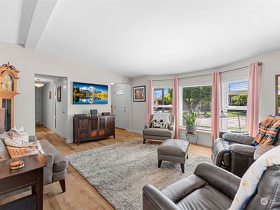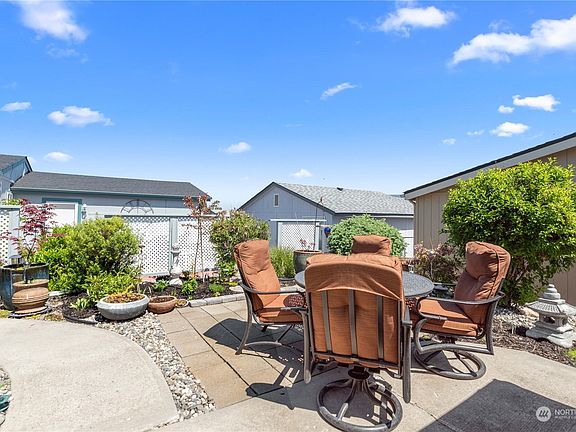 Delightfully updated manufactured home has a quiet patio & deck for enjoying the summer sunshine. Meadowridge does have locked RV parking available for a fee & pets are allowed with restrictions. Newer appliances,new roof in 2022 & new retaining wall...excellent condition & lovingly maintained.