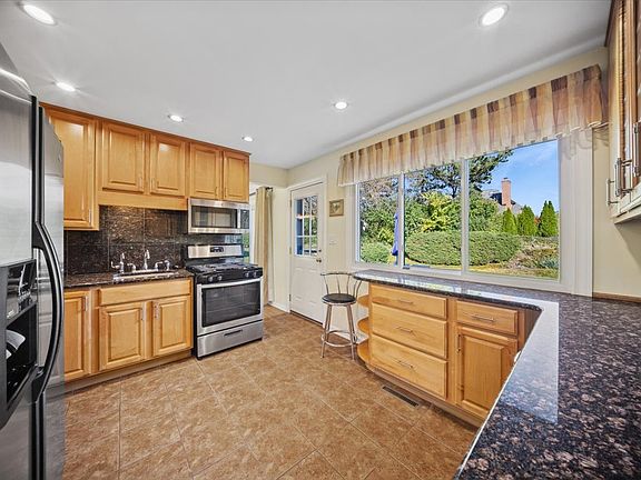 Cozy eating-bar areaPeaceful viewsBright kitchenGranite countertopsHardwood floorsMaple cabinets