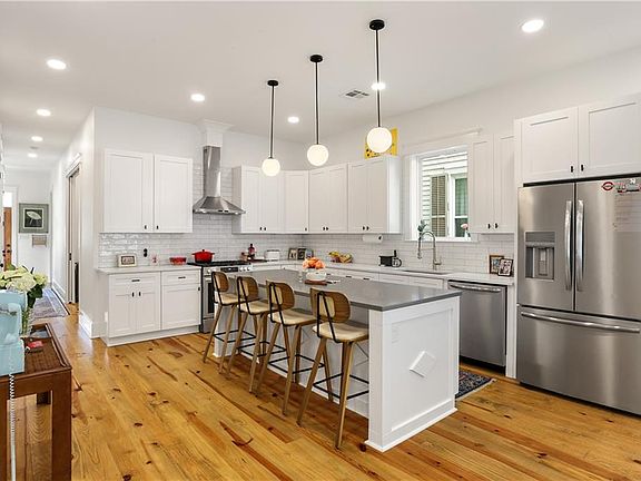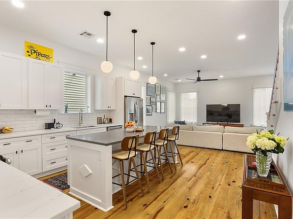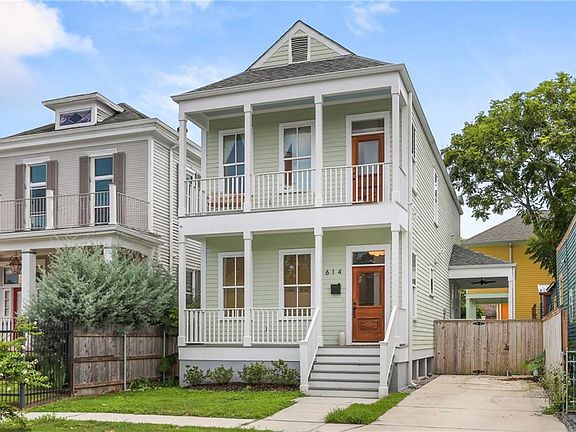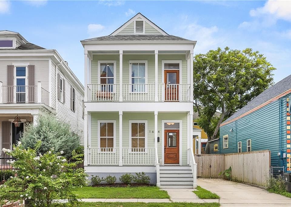 This stunning four bedroom, three bath home is just across from the Fairgrounds on a sweet, quiet residential street. Enjoy Jazz Fest from the home's three porches and just cross the street (in costume) for the famous start of New Orleans horse racing season on Thanksgiving Day. Built brand new in 2023, this beautiful double-gallery home features wood floors, quartz counters, pocket doors, sleek bathrooms, gorgeous light fixtures, a large kitchen pantry, generous closets, off-street parking, a private side porch and a fenced yard. Well insulated, the utility bills are unusually low. Three bedrooms upstairs and one downstairs (perfect for an office or guest room--no closet). Light-filled and low maintenance, this home checks all the boxes. The large primary bedroom has space for a sitting area and a sleek, modern bathroom. Close to the vibrant energy of Bayou Road and Esplanade Avenue with restaurants, coffee shops, and grocery stores. A quiet enclave a short stroll from all the beautiful Mid-City fun! X flood zone!