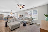 Large islandCovered front porchOpen-concept floor planSpacious family roomStainless steel appliancesSeparate showerRear patio