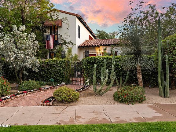 Once the residence of US Senator Barry Goldwater, this exquisite Spanish Colonial Revival home in the historic Encanto/Palmcroft neighborhood exemplifies architectural elegance and refined taste. Meticulously renovated, it features authentic details like beamed ceilings, an arched stained glass window, and original tile work. A grand formal living room and a dramatic curved staircase with original wrought iron railings highlight the interior. Well-appointed spaces include formal living and dining rooms, a breakfast room, sunroom, and a loft-style family room. The luxurious primary suite boasts custom bookcases, a remodeled bath, and private pool access. Including a 242-square-foot finished basement, this signature estate combines historical richness with modern comfort, making it a prestigious find in a prime location.