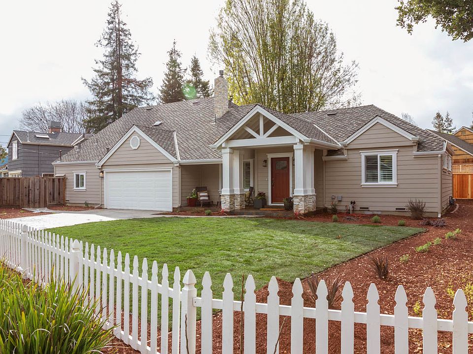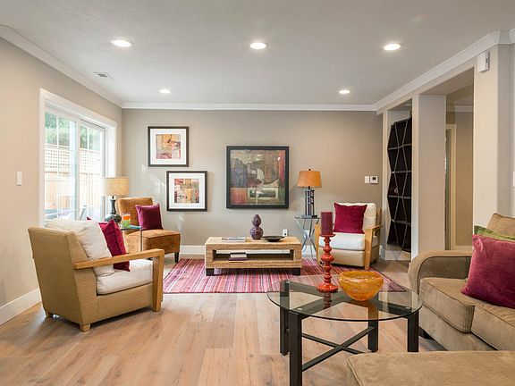 Stylish Open Design with Modern Craftsman Appeal! Completely renovated home with spacious floorplan. Liv Rm has crown moldings, recessed lights, fireplace with slate surround. Large Fam Rm w/ bay window, plantation shutters & large sliding door to rear yard. Fabulous gourmet kitchen w/ Shakerstyle white upper cabinetry and espressohued lower cabinetry topped with quartz counters & center island. Formal Dining area with wood floors and casual dining area off kitchen. Mainlevel master suite has a customized walkin closet plus sliding glass doors to a private deck. The en suite bath, in travertine and quartz, has a dual sink vanity & rainspout shower. Upstairs has 2 bedrooms w/ large closets and full bath. Large rear yard. Outstanding Cupertino schools.