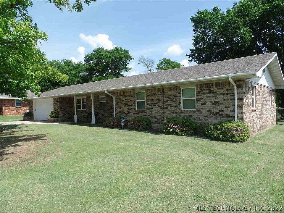 This Cozy Three Bedroom Two Bath Home is in a quiet neighborhood close to Golf Course. The kitchen has been updated from back splash to counter tops; all appliances included, plus washer and dryer. House has a two car garage with lots of storage space, a large back yard with storm cellar, storage building and lots of shade from mature tree.