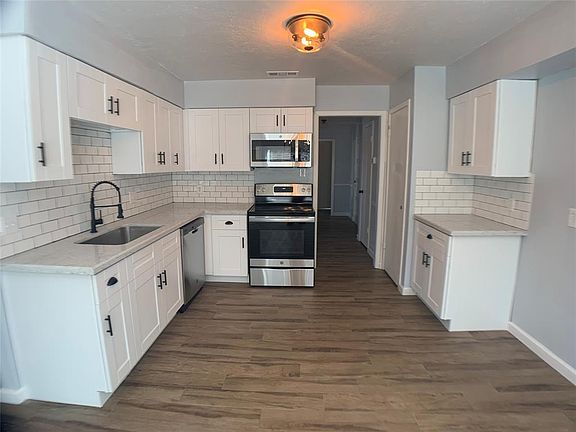 Come and see this beautiful one story home in Woodsway. 3 bedrooms 2 full baths. Recently renovated throughout the entire home. Large living area boasts with high ceilings and floor to ceiling tiled fireplace. Kitchen has stainless appliances, subway tile back splash and beautiful white quartz counters with a under mount farm house sink. Wood looking title throughout the whole house. Per the seller-recent updates include AC, Furnace, Water Heater, Electrical Box and 2 Garage Doors & Openers. Large backyard great for entertaining. Close to shopping, restaurants, and more. Easy access to HWY 45 for commuting.*Room dimensions are approximate, rooms should be independently verified*