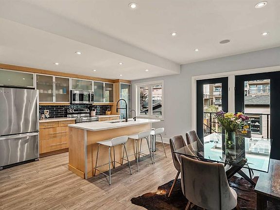 Welcome to this beautifully maintained home in the heart of South Calgary - just minutes from Marda Loop, 17th Avenue, the Beltline, and more. As you arrive, you’re greeted by charming curb appeal with mature trees, vibrant flower beds, and concrete accents guiding you up to the sun-filled front porch. From here, soak in the south-facing views that overlook the community below. Enter inside to a bright, open-concept main floor where natural light flows seamlessly from front to back. The cozy front living area, complete with a gas fireplace, leads into the recently updated kitchen featuring stainless steel appliances, quartz counters, and a stylish new backsplash. Adjacent to the kitchen, the dining space easily accommodates family gatherings and entertaining, while the patio doors open to your private deck for indoor-outdoor living. This home has been thoughtfully cared for, with brand-new windows installed this year and upgraded air conditioning for year-round comfort. Upstairs, the primary retreat offers a 5-piece ensuite with dual vanities, plus the convenience of upstairs laundry. A second bedroom completes this level. The fully developed lower level provides even more living space with a large rec room, wet bar, full bathroom, and two guest bedrooms. The walkout basement opens directly to the backyard, creating another perfect spot for relaxation. Outside, enjoy a manicured lawn, raised garden beds, and a refinished upper deck overlooking the yard. The oversized double detached garage provides plenty of storage and privacy fencing completes this picture-perfect retreat. Book your showing today!