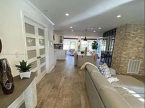Modern 3-bed, 2-bath home in Deerfield Beach’s coveted Cove neighborhood—just minutes from the ocean. Enjoy a completely remodeled open floor plan with porcelain tile, recessed lighting, and a chef’s kitchen featuring custom cabinets, quartz counters, and stainless steel appliances. The primary suite offers a double vanity bath and walk-in closet. Outside, relax in your tropical oasis by the saltwater pool, tiki hut, and built-in BBQ. Tankless water heater, electric car charging outlets, and Samsung washer/dryer included.