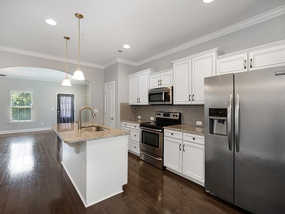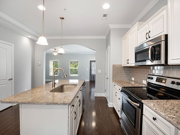 This END unit townhouse is newly painted, w/ hardwood floors on the main floor, LVP flooring on the stairs & 2nd floor. It has a bright & open concept living room, kitchen & dining w/ white kitchen cabinets, granite counter top, tile backsplash & kitchen island. Spacious owner's suite, master bathroom w/ tile showers, shower glass doors & double vanity sink. California closets in all bedrooms, new cordless blinds & attic space for storage. Refrigerator, washer & dryer included. One attached car garage, a front street parking space & front covered porch. Smart home features add include: Ring Doorbell and wi-fi digital entry keypad. Amenities incl. walking trails, dog park, open space for grilling & newly opened clubhouse w/ pool.
