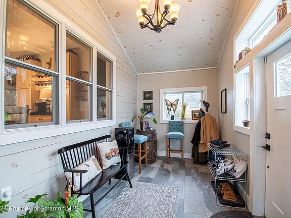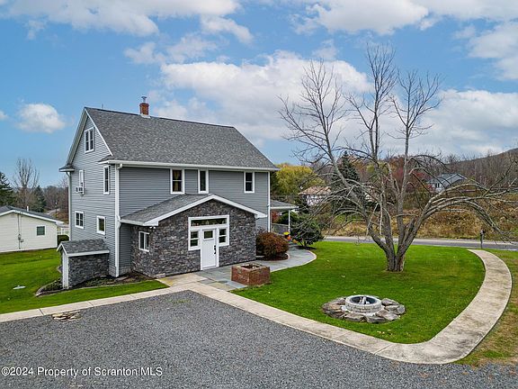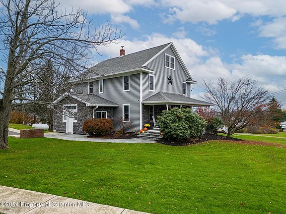 Welcome to this stunning 4-bedroom, 3-bathroom home, located in the desirable Clarks Summit area and offering 2,064 square feet of updated living space. The property's three main buildings are strategically placed to provide exceptional privacy, making it a perfect retreat. In Addition to, its serene setting, the home is just a short drive from malls, groceries, golf courses, skiing, parks, and hospitals.Step inside to find a spacious and modern eat-in kitchen featuring granite countertops and tile floors, ideal for culinary enthusiasts. The first floor boasts a dedicated home office perfect for remote work or study. The large living room/family room area is versatile enough to accommodate a schooling space if needed. The side entrance welcomes you with a charming room for coats and hats.The second floor houses four spacious bedrooms and two full bathrooms, while an additional full bathroom is located on the first floor. The upstairs hallway provides access to a walk-up attic, offering potential for additional living space, storage, or a cozy theater room. The Navien combi-boiler ensures warmth and comfort during winter and the basement is complete with a walk-out entrance, also includes the laundry.Outside, a detached three-car garage and workshop with a large RV/truck bay provide over 3,500 square feet of versatile space for storing and working on antique cars, ATVs, boats, and other toys. Notable features include a new roof (2019), new gutters(2022),vinyl siding and stone (2020), original hardwood floors,Andersen tilt-in windows, high ceilings, a large front porch, a rolling barn door to the basement, a campfire pit, a bay window, French doors, shiplap, a root cellar, and a laundry chute. Situated on a picturesque rural setting, this original farmhouse and barn have been kept while maintaining their historic charm