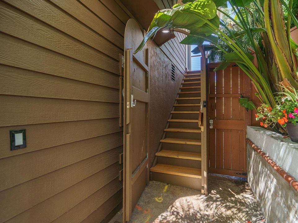 The upstairs unit features a private entrance and a tranquil tropical setting with lush greenery views. Interior highlights include top-of-the-line flooring, upgraded baseboards, and abundant natural light from large windows throughout.