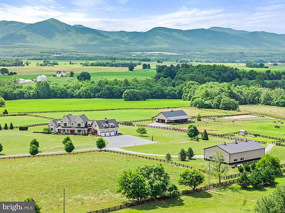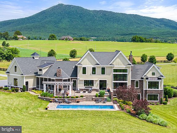 An extraordinary estate with endless possibilities—a refined country home, entertainer’s dream, multi-generational retreat, equestrian haven, or hobby farm. Perfectly sited on 35 acres, this custom Craftsman captures dramatic Blue Ridge Mountain views from nearly every room. Inviting yet undeniably impressive, the home features hickory wood floors, a floor-to-ceiling stone fireplace, tall wainscoting, and soaring two-story windows that overlook the pool, pastures, and mountains. The chef’s kitchen, with premium finishes and two oversized islands, flows to the dining and great room. The main-level primary suite is large with an indulgent bathroom and custom closet. Upstairs, two bedrooms share a Jack-and-Jill bath, and a third is ensuite. A large bonus room leads to the second laundry room and gym with rubber sports flooring. In 2022, the lower level was enhanced with a kitchenette, creating a bright, versatile space with 9-foot ceilings, walk-out glass doors, an ensuite bedroom, and a living room with gas fireplace—ideal for guests or extended family. Outdoors is equally exceptional. A saltwater pool, hot tub, outdoor kitchen, and screened porch with double-sided fireplace are surrounded by stunning hardscape and low-maintenance gardens. Once a small dairy, now an equestrian’s dream, the 2022-built six-stall barn has a conditioned tack room with half bath, wash stall, and feed room. The arena and round pen, added in 2023, have fiber footing. Eight fenced pastures are ideal for grazing, while larger fields are in crop. Between the house and barn are a playset, in-ground trampoline, chicken coop, and greenhouse. A massive 48x80 metal barn is perfect for farm use, hobbies, or business. One side is finished, insulated, and radiant-heated; the other side provides flexible storage. For those who want it all—peace and privacy, luxury and functionality, mountain air and metro accessibility—this property delivers. Located in McGaheysville, home to Massanutten Resort and endless outdoor adventures, with Harrisonburg and James Madison University 20 minutes away, Charlottesville about an hour, and Washington, D.C., just two. A destination, retreat, and legacy property in one—designed to inspire, welcome, and endure.