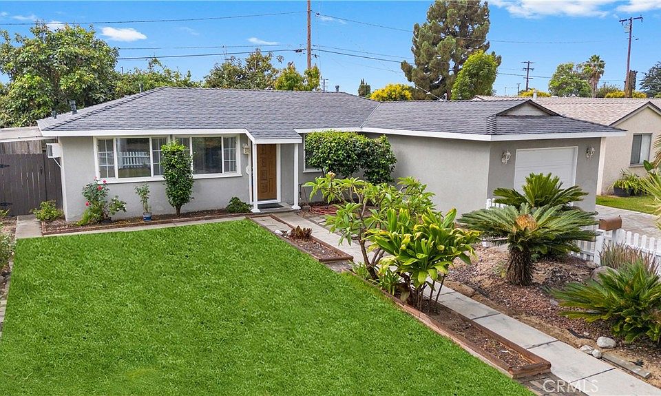 This charming, move-in-ready single-family home in Fullerton offers 4 bedrooms and 2 bathrooms, featuring brand-new flooring in both bathrooms. The kitchen has brand-new stainless steel stove and dishwasher, along with generous countertop and cabinet space—ideal for home chefs. Large windows flood the home with natural light. The front yard, with its white picket fence and beautiful landscaping, enhances curb appeal, while the spacious backyard is perfect for entertaining. The home also features a new roof installed 2 years ago and was fully repiped 4 years ago. Additional highlights include a storage shed and avocado tree in the backyard, all new shower floor tiles, vanity, and toilet in the bathroom by the primary bedroom, and close proximity to shopping centers (3 minutes from the fwy, Shell and Chevron, 8 minutes from Costco and Target, 13 minutes from Knott's Berry Farm and Disneyland), combining comfort and convenience in a welcoming atmosphere.
