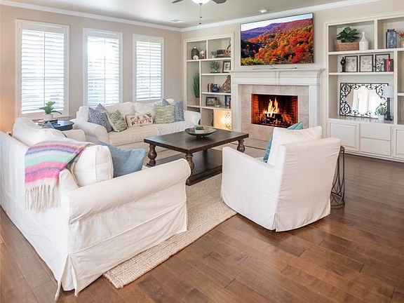 Welcome to this stunning 4 bedroom, 3 bath home offering the perfect blend of comfort, style, and functionality. Featuring an open floor plan with updated flooring, bathrooms, and kitchen, this home is designed for modern living and effortless entertaining. Inside, you will find plantation shutters, elegant finishes, and abundant natural light throughout. The spacious kitchen features quartz countertops, plenty of cabinet space, a large island, and updated 5 burner gas stove....ideal for any home chef. A large game room provides the perfect space for family fun, movie nights, or workout equipment. A large bonus room with elevated ceiling and crown molding is an ideal home office, formal living, or playroom. The large primary retreat is a true haven with an updated bathroom featuring quartz countertops with undermount sinks, upgraded shower and soaking tub, stylish lighting, and an expansive walk in closet. Secondary baths have been updated with quartz countertops, flooring and lighting. Enjoy outdoor living at its finest with beautiful landscaping and an oversized covered patio that wraps around. Nights are heavenly with outdoor bistro lighting and plenty of room for outdoor cooking, living space, and tv. A storage building in the backyard provides extra space for tools, hobbies, or seasonal items. Situated on a desirable corner lot of a cul de sac, this home is steps away from the community pool and playground. Residents also enjoy scenic walking trails connecting to Celebration Park and a large fishing pond, making this an exceptional place to call home.