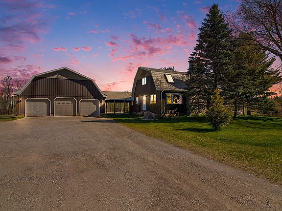 Welcome to your private paradise where tranquility meets adventure! Just under 40 acres of natural beauty and prime hunting land surrounds you! Featuring a private pond w/ bass and bluegill and Cedar Creek running through the property. This 3 bedroom, 2 full bath home has a partially finished basement with 2 additional non conforming bedrooms. Beautiful white cedar accents and oak trim throughout the home. Dual heating options w/ a propane furnace or wood burning furnace. Durable steel siding and roof. A large back porch leading to the 3 stall garage with an upstairs loft, providing ample storage, a wood burning sauna room, and for hunting enthusiasts, a meat processing room! Garden area and fruit trees. Snowmobile trails nearby. Here is your new home sweet home you've been looking for!