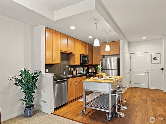 Nestled in the heart of downtown Redmond, The Cleveland presents an ideal urban retreat. This pristine 1-bedroom condo with a flexible office/den area combines modern elegance and functionality. Beautiful hardwood floors,freshly painted walls, rich granite countertops, warm cabinetry, and sleek stainless-steel appliances create an inviting interior. Large windows and a private deck offer peaceful courtyard views and natural light. Enjoy exceptional amenities, including a fitness center, club room, garage parking, & elevator service. Walk to everything—restaurants, transit, fitness studios, Trader Joe's, and more. Commuting is easy with nearby freeways and work centers,such as Microsoft, Space X. Marymoor Park is a few minutes away.