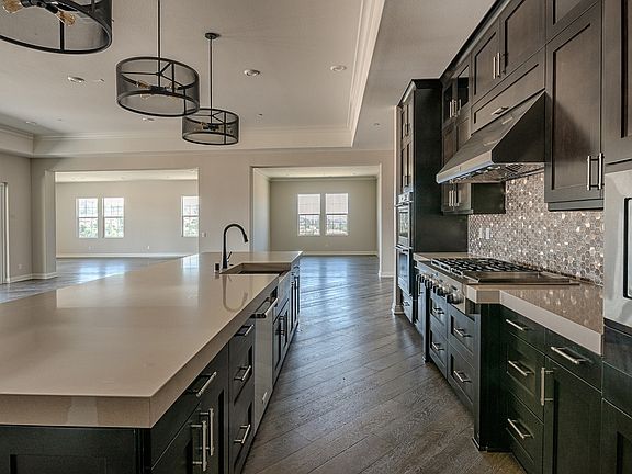 Step into luxury with this open concept floor plan. This home is perfect for entertaining with a game room and an open great room with crown molding ceilings and a gas appliance fireplace. The kitchen is a dream come true for the gourmet cook with a waterfall island with quartz countertops and KitchenAid® stainless steel appliances. The master suite features a separate full tile surround shower with large soaking tub, marble countertops and dark cabinets. Additional features include enhanced flooring, brushed nickel plumbing fixtures, and more.