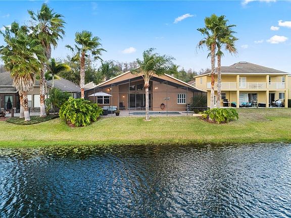 WOW!Breathtaking views the moment you walk into this 4 bed 3 bath waterfront home;This home is immaculate;Enjoy the lush landscape as you approach the front entry;Dble doors take you in w/the living on one side & dining on the other these formal rooms are light & bright & have crown molding;step further & enjoy the wide open family room/kitchen area w/art gallery niches; the kitchen is 42" maple cabinets w/molding & granite tops; island & nook space make it great when entertaining;enjoy the step in pantry & upgraded stainless appliances; open to the famiy rm w/volume ceilings & built in entertainment center along w/wall of sliders allowing the view to be enjoyed from every angle;the master retreat has tiled foyer & lush carpet w/slider to the outside oasis;bath includes double sinks w/ cultured marble tops, garden tub, glass block, step in shower & private water closet; his & her walk ins make for great space; the wing of secondary bedrooms include spacious walk in closets in each room 2 w/nicely done bath w/tub/shower & cultured top down the hall; 1 w/ its own private bath which has shower & white cabinets w/solid surface top also functions as pool bath; the laundry is located next to the bedrooms w/storage shelves & sink tub; the home has tile in all the walkways,family,kitchen & baths;garage has a workshop & you can eat off the floor; upgraded brush nickel faucets, light fixtures throughout, transom windows for extra light; move in ready & furniture is optional. Enjoy gated community w/parks/playground