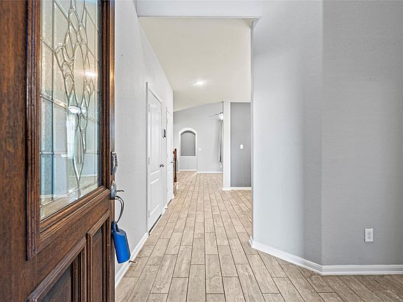 Beautiful 2-story home featuring 4 bedrooms, 3.5 bathrooms, and a bright, open layout! The spacious family room flows seamlessly into the island kitchen, showcasing white cabinetry with soft-close drawers, stainless steel appliances, a gas range, and a huge breakfast bar—perfect for casual dining and entertaining. Wood-look tile flooring extends through the entry, family, kitchen, and dining areas for easy maintenance and timeless style. The formal dining room adds a touch of elegance for gatherings. The primary suite offers a dual sink vanity, soaking tub, separate shower, and walk-in closet. Upstairs, enjoy a large game room ideal for play or relaxation. Step outside to a generously sized backyard with a covered patio and full sprinkler system—ready for outdoor fun and gardening. Zoned to highly acclaimed CFISD schools. Bridgeland amenities include pools, tennis courts, splash pads, themed parks, basketball courts, miles of trails, lakes, shopping and dining.
