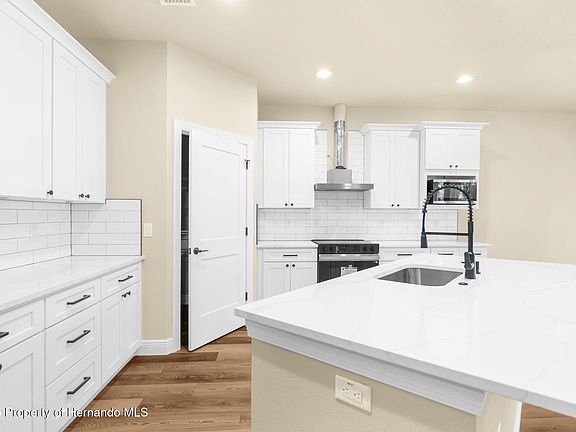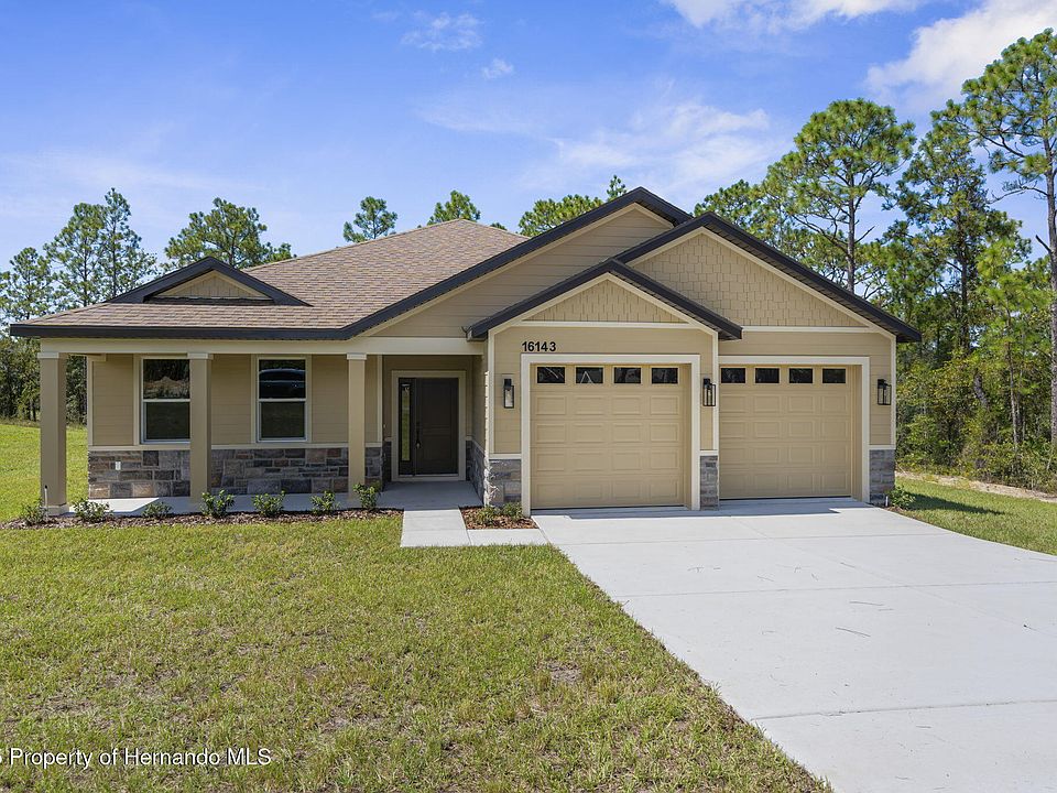 BRAND NEW, Craftsman-Style, Luxury Home!! Completed and Move-in Ready!! PAVED ROAD!! NO HOA!! NO FLOOD!! The only thing you need to do is decorate to make it your own!! This STUNNING home offers 4 large bedrooms + 2.5 bathrooms + 2 car garage + large front porch + covered rear lanai in a great location close to shopping and zoned for the county's newest schools (K-12)! This Craftsman-style home with country appeal and stone accents - offers you that southern country feeling! 2,166 sq ft living space; 2,910 total. The front porch with stone accents greets you and your guests!! Entertain your family and friends in this grand living space which is the centerpiece of the home with a large open great room, island-style kitchen and dining room all with 10' ceilings!! The high ceilings and open space offers you a large open spacious feeling where your family can gather for years to come! Every inch of this custom home is upgraded and attention was paid to every inch and every detail including designer faucets and lighting, upgraded baseboards, upgraded windows/sliders, and continuous Luxury Vinyl Plank flooring throughout the entire home (no carpet)! The upgraded kitchen offers stunning countertops with the modern large, single-level island with breakfast bar big enough for the whole family! Real wood upgraded 42'' soft-close cabinets with a stunning backsplash for that finished luxury look and feel. New stainless steel, upgraded appliances! Generous-sized pantry! The home has a split floor plan offering privacy to the owner's suite with a large ensuite bathroom! The 4th bedrooms is a great option for those who work from home or need that extra room! The private master bedroom offers a high tray ceiling and an EXTRA LARGE walk-in closet! The ensuite bathroom is a SPA RETREAT in itself with a large stand-alone, modern soaking tub, separate over-sized, floor-to-ceiling tiled walk-in shower and designer shower head and frameless glass, dual sinks, matching real wood upgraded cabinets with framed mirrors, designer faucets and lighting, and a separate toilet room for privacy! There is a half bath off the great room for your guests!! The second bathroom dual sinks and matching luxury finishes! The half guest bath is upgraded, as well, to match the home! Sip your coffee on your large back covered patio in the mornings! Multi-zoned sprinkler system & landscaping! Brand NEW well and septic!! Everything is brand new!! This stunning Craftsman Home, the Bryan V Model, is offered by LDT Construction!! BUILDER'S 2/10 WARRANTY!! Quality Custom Builder. Other spec homes available; call for details. Minutes from shopping, restaurants, movies, schools, Buccaneer Bay Water Park, kayaking the crystal clear Weeki Wachee River, sunsets at Pine Island, boating, fishing, swimming w/the manatees. 1 hr to Tampa & TOP US BEACHES! **** There are 5 homes on Penn State all by the same quality builder, LDT Construction. Ask to see all 5. Two different models. Gray/White and Warm Beige/White are the two color choices.