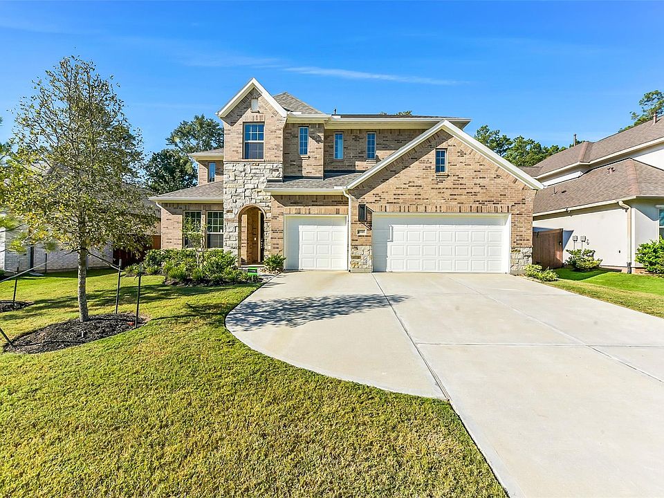 Discover Good Natured Living in the Brand-New Master Planned Community of Evergreen! Located off SH-242 and tucked behind a plethora of trees lies a retreat ready to welcome you home. This fabulous two-story home is wrapped with brick and stone, surrounded by lush landscaping, and rests on a 60’ lot. This two-story plan features 5 bedrooms, 4 full and 2 half bathrooms, a study, and open concept layout complemented with high ceilings. A kitchen with Built-In Kitchen Aid Appliances, a large island, and a plethora of designer cabinetry will have you excited to cook and serve no matter the occasion! Fusing indoor and outdoor entertainment is simple with sliding glass doors and an extended covered patio. Retreat to a Primary Suite with a large bathroom with dual vanities, garden tub, and glass enclosed shower. Upstairs includes 3 secondary bedrooms, and the ultimate entertainment space: a game room and media room. All of this and more await you. Come Live the Difference with Shea Homes!
