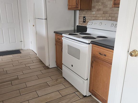 Breakfast barOpen floor planTile backsplashWindows equipped with blinds