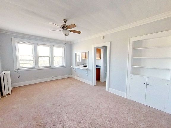 This cozy studio apartment will not feel like a studio at all! The living space features beautiful carpet, a ceiling fan, and built-in shelving! The kitchen feels open with the baker's window. There is a large second room across from the bathroom which could be used as an office or a storage room/ closet! Off of that room is another large closet.