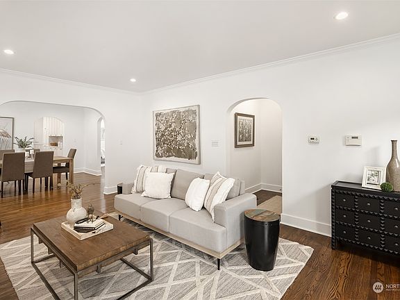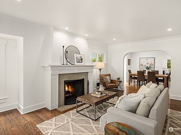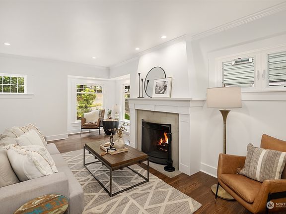 Nestled in the heart of Madrona, this Craftsman charmer is the perfect blend of tranquility & convenience. Freshly painted interior/exterior, hardwood floors throughout the main, the family room is anchored by a beautiful wood burning fireplace for cozy nights. A spacious dining area just off the kitchen, ideal for entertaining. The chefs kitchen w/ slab Carrera marble counters, high-end SS appliances, ample amount of storage & easy access to the back deck for BBQ's or relax in the low maintenance backyard. The daylight basement boasts a media room great for movie nights, 2 bdrms & bath. Radiant floor heat throughout the home. All rooms support abundant natural light & the primary bedroom has a walk-in closet w/ updated ensuite bath.