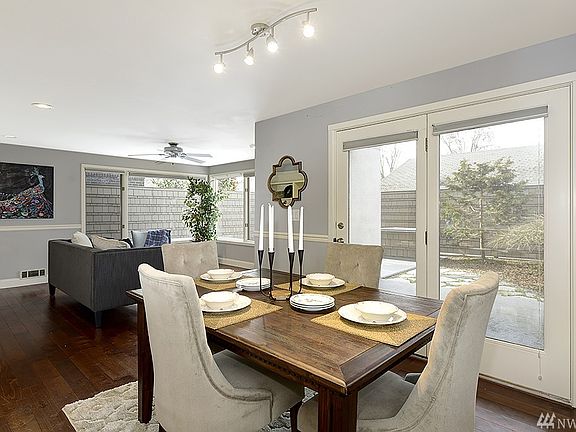 Enjoy privacy & quiet in the heart of the city! This garden home (1 level, no steps, elevator bldg) is 1/2 block from Madison Beach & steps to vibrant Madison Park shops, restaurants & new bookstore. Home features sunny patio & a large, fully fenced yard. There is a mantled hearth fireplace in the open-concept living & dining room for a gracious living area. The remodeled kitchen features Italian porcelain countertops for ample prep space. Master w/bath ensuite. Pets welcome. Garage parking.