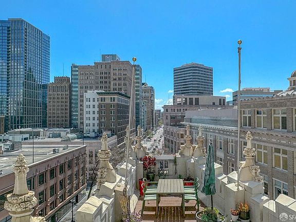 This flat offers a rare opportunity to own a stunning piece of architectural history in exquisite Gothic Revival style. The Cathedral Building's facade is just the beginning of its allure. The main lobby is a fun taste of early 1900's glamour. A personalized elevator code whisks occupants to the 9th floor and opens onto the resident's private lobby. Stretched across the entire 9th floor is a spectacular home for the most insightful buyer. Anchoring the entertainer's space is a generous kitchen with a Viking refrigerator and Bertazzoni range. An oversized great room is flexible for any lifestyle with enveloping windows featuring views of downtown. A generous primary suite boasts a walk-in closet and adjoining marble clad bathroom with a dual vanity and bidet. Another bedroom is detached for privacy yet offers proximity to the second bath. Laundry closet offers storage options and front loading Bosch appliances. A bonus third room offers the flexibility of an office, guest room or fitness studio. Near entertainment like Fox Theatre, Lake Merritt, and top rated bars and restaurants, this home offers endless opportunities for the adventurer looking to collect lifetime experiences! Transportation is a breeze mere blocks to BART stations and freeways. Truly a majestic opportunity!