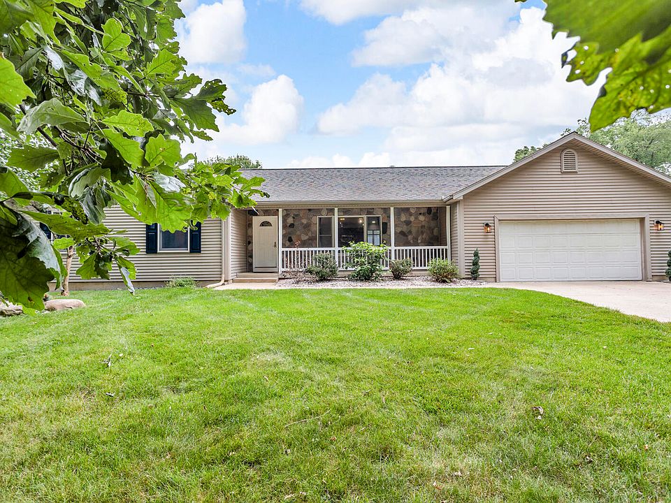 Welcome to this 3BR, 2.5BA ranch in desirable Western School District on a .56 acre parcel. This home offers convenience and comfort with an attached 2-car garage and complete appliance package included. Step into living room featuring a cozy gas fireplace and brand-new carpet, flowing seamlessly into the dining area with sliding doors open to deck and large backyard. The kitchen is a true centerpiece, boasting a center island, pantry, and beautiful cabinets. The main floor also includes a laundry room with a utility sink, a spacious primary suite with private bath, two additional bedrooms, and a full bath. Downstairs, you'll find a finished basement offering a 1/2 bath, family room, rec room, non-conforming 4th bedroom ideal for an office or fitness room, and plenty of storage.