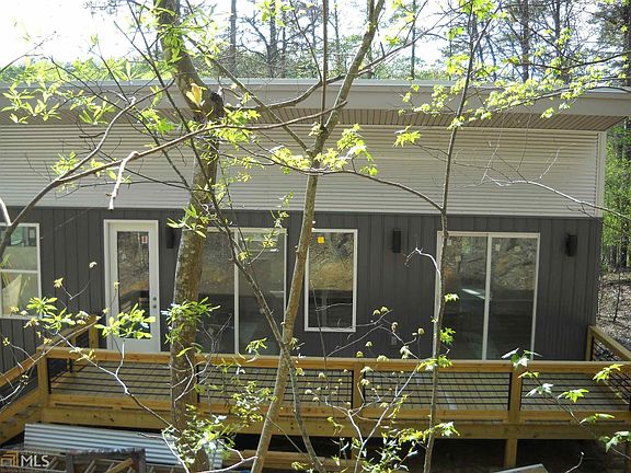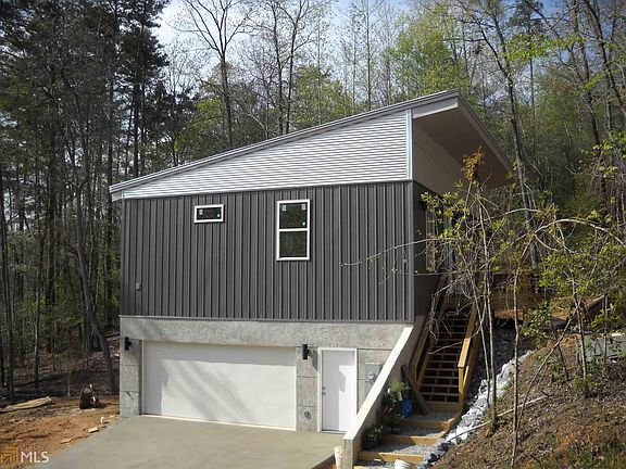 Be the Proud Owner of this Contemporary House with 2 toned metal siding and tree top views. Large outside deck overlooks the privacy of nature. Open floor plan has LR with exciting colorful FP, kitchen features cement countertops and open shelving. Owner's suite with extra large tiled shower in bath and custom bathtub, separate double vanities. Terrace level has 3 rd bedroom with acid stained concrete floors, and 2 car garage w/storage.