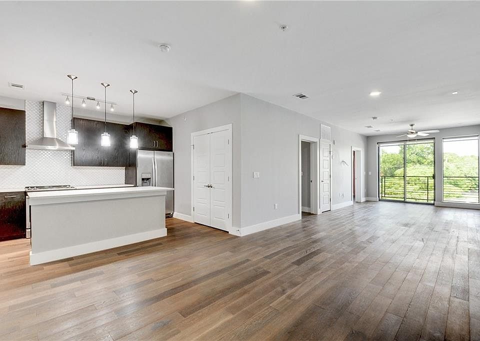 Low price per sq ft!! Lovely 1000 sq ft condo with open and bright living space only 8 blocks from central downtown! Condo is only 4 years old. No neighbors above you! Quick walk out the door to Zilker Brewing, The White Horse, Grocery, parks, etc. Very secure building with gated access, and a private, covered parking lot with gated entry. Plenty of room for a living/dining/home office area combo, and the gourmet kitchen is extra large with a wonderful large kitchen island. Perfect for entertaining. Large master bath with dual vanities, walk in shower, plus a large soaking tub. Owner added a extra soundproof window and room darkening shades to the bedroom for extra peace and quiet. Very private balcony w/ room for seating. Common area access on 4th floor to outdoor seating and a gas grill.