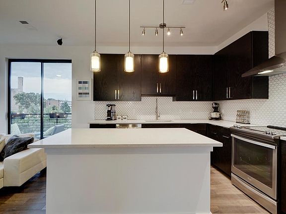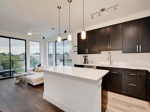 Amazing location!! Within walking distance to East 6th nightlife, restaurants, and entertainment!! This modern condo features hard surface flooring throughout, tons of in-unit storage, large wrap around balcony, quartz countertops, SS Whirlpool appliances, refrigerator, and full-size washer/dryer. Building features include controlled access entry, reserved garage parking, and community rooftop terrace of the 4th floor.
