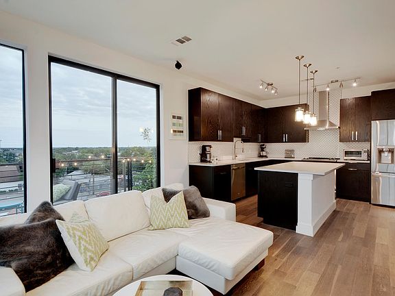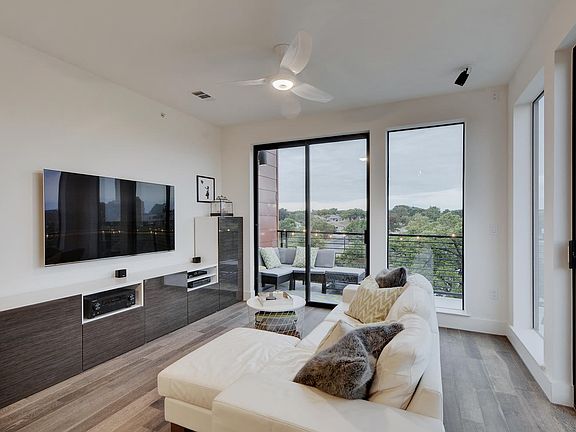 One of a kind, top floor 2 bedroom/2 bath in arguably the most desirable area of East Austin! Only two units on this floor and no shared walls. Spectacular views West, North, and East including Downtown Austin, the Capital, UT Tower, and more. Two living areas. 150+ sq ft corner balcony. Wood floors throughout. Tons of storage. This upgraded unit features Hansgrohe fixtures, Haiku fans, Toto, designer cabinetry, and more!