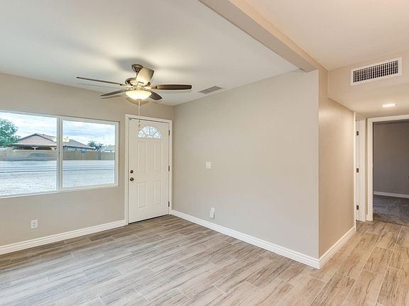 Stunning remodeled 3 bed 2 bath home. New roof! All new pex plumbing. New heat pump for AC & heating. New water heater. New dual pane windows. Kitchen features new cabinets offering plenty of storage space & new laminate counter-tops. Seller will provide new stainless steel appliances including smooth-top electric range, OTR microwave & dishwasher with accepted offer. Spacious floor plan with all new elegant ceramic tile flooring with new carpet & pad in all the bedrooms. Both bathrooms have new vanities, new mirrors & new tile shower surrounds with deco accents. All new two tone interior & exterior paint. New brushed nickel light fixtures, ceiling fan, plumbing fixtures & door hardware throughout. Back yard features mountain views & large lot. This home is move in ready! Agent/Owner.