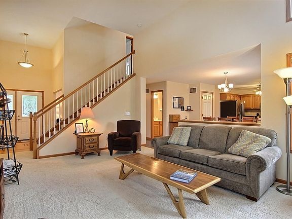 Great Curb Appeal on this Wonderful 1.5 Story Home in Penn Oak with nearly 2,000 Square Feet of Finished Living plus Room to Grow in the Large Unfinished Basement. Stepping into the foyer with wood flooring & decorative inlay, one has views of the 2 story living room lined with windows & fireplace. Large eat-in kitchen open to the living room features a breakfast bar, pantry & desk area plus comes complete with appliances. Formal dining room with hardwood flooring. The main level master bedroom offers a tray ceiling, master bath with whirlpool tub and walk-in shower with cultured marble surround & a walk-in closet. The laundry room & powder room complete the main level which offers everything for single floor living. Upstairs are 2 nice sized bedrooms which share a full bath. Large maintenance free deck in back, new landscaping around home & charming covered porch for enjoying nice days. Amazing location, close to downtown, Sportsplex, shopping, highways & more + a neighborhood park.