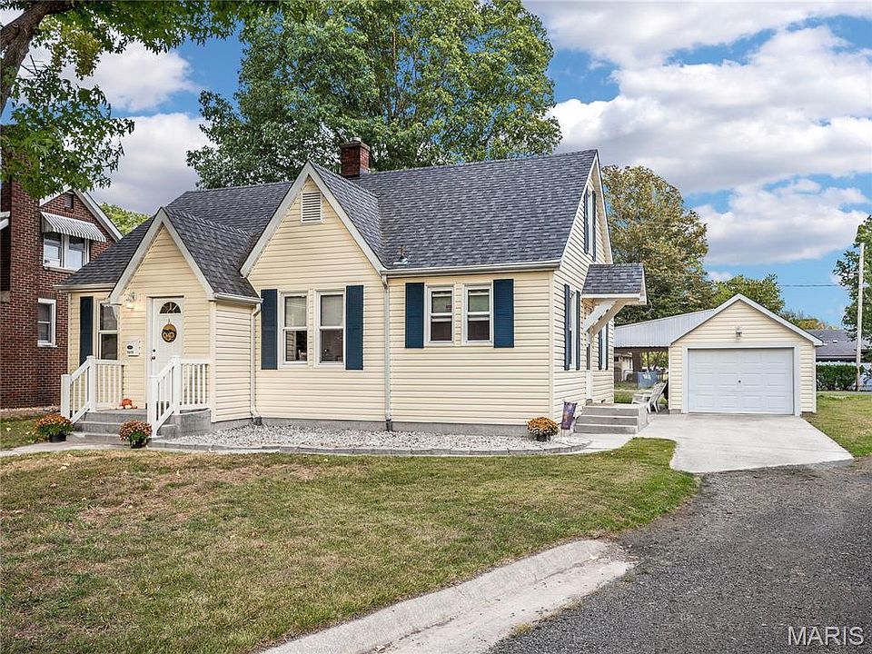 Charming home! Cute entry that leads to the living room. Dining room between living room and kitchen. Kitchen appliances stay, counter tops are granite. 2 bedrooms on the main level with a full bath between the bedrooms. Upstairs is a bedroom with an extra closet in the hallway. White doors and trim. New matching ceiling fans throughout main level. Washer and dryer also stay. The one car garage has a covered patio off the side to enjoy the outdoors. Very close to school, county fair grounds, public pool and much more!!