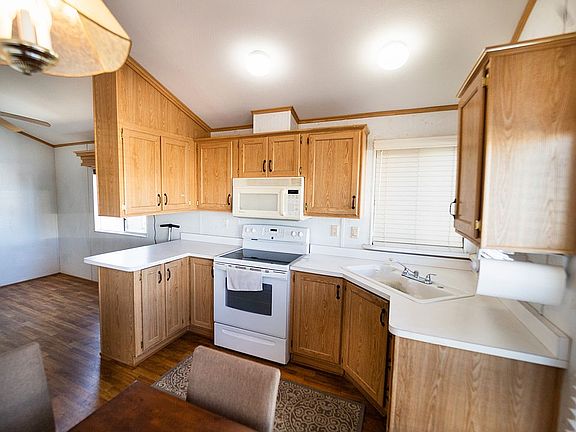 Light and bright 1 bed/1bath Cavco park model located in Carefree Manor RV resort. This charming 400 sq. ft. unit has Mountain Views and is located on a dead end street with no through traffic. Includes kitchen appliances, and washing machine. New dual pane windows and patio door w/upgraded blinds/treatments. Pet friendly with a dog door and a small dog run. Spacious carport/patio area with 5 electrical outlets ready for your lights/fountains/workbench, etc. There is also a nice outdoor storage area. This is a 55+ park with community pool, clubhouse, and laundry facilities. Come check out this great unit!