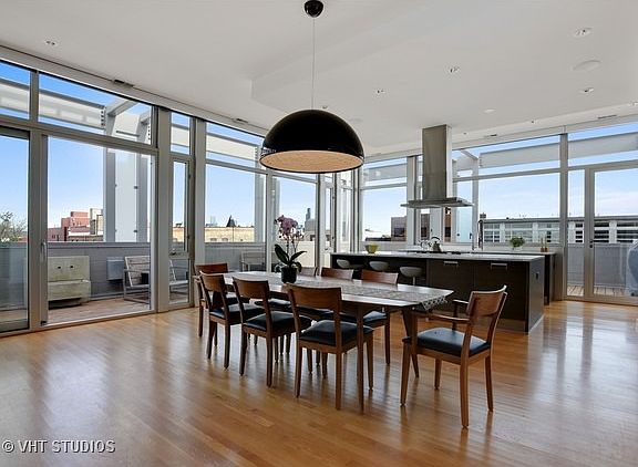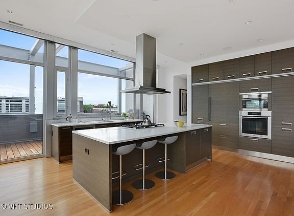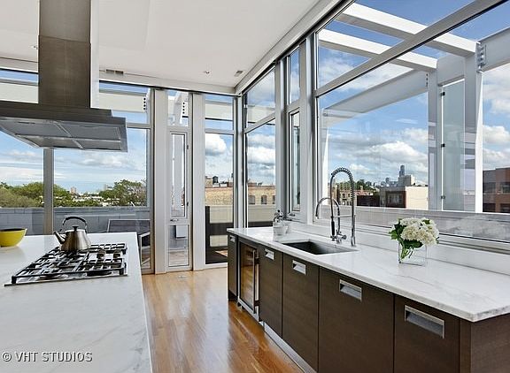 Incredible corner Penthouse in Bucktown. Amazing city views from your own private rooftop and wrap around terrace. Spacious split floor plan with 3 bedrooms and 2.1 baths, 10'' ceilings throughout. Floor to ceiling windows. Arclinea kitchen with Subzero and Miele. Luxurious master bath with steam shower. Rooftop deck has hot tub and sauna. Wood burning fireplace. 2 car garage included.