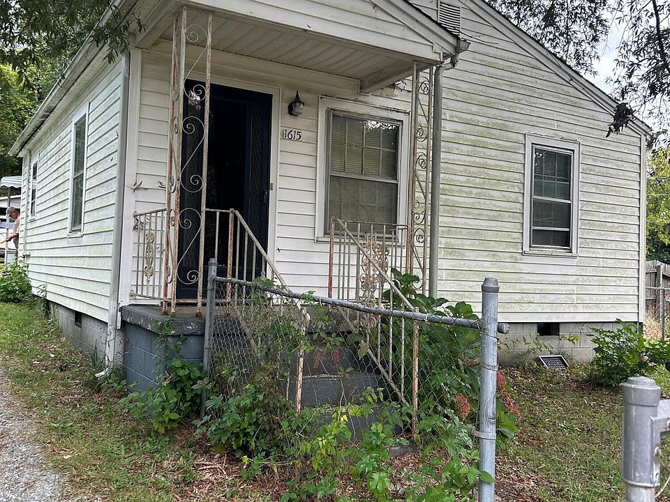 CASH ONLY. FLIPPERS! INVESTORS! This home needs some TLC to restore it to a solid starter home or rental property. Sturdy hardwood flooring in the LR and bedrooms. Roof and ceilings need to be repaired, HVAC has been vandalized. Vinyl siding and partially fenced yard. Carport with 18x20 concrete pad. 8X10 storage bldg. Shared driveway easement.