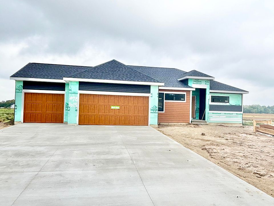Welcome to the Elmwood by JTB Homes in Spring Grove Village Community. A spacious ranch with stone and vinyl siding and a 3-stall garage. This home features 3 main-floor bedrooms and 2 full baths, with cathedral ceilings in the foyer, kitchen, dining, living room, and beautiful 14x12 Michigan Room. The living room includes an electric fireplace with windows on either side. The kitchen offers a large island, vented hood, and pantry. The primary suite boasts a tray ceiling, double vanity, and large walk-in closet. Enjoy a main-floor laundry and mudroom with bench and walk-in closet. A 12x12 deck with stairs is attached to the Michigan Room. The basement adds over 500 finished sq. ft. with room for more. This price includes finished landscaping for your new home! Estimated completion is October.