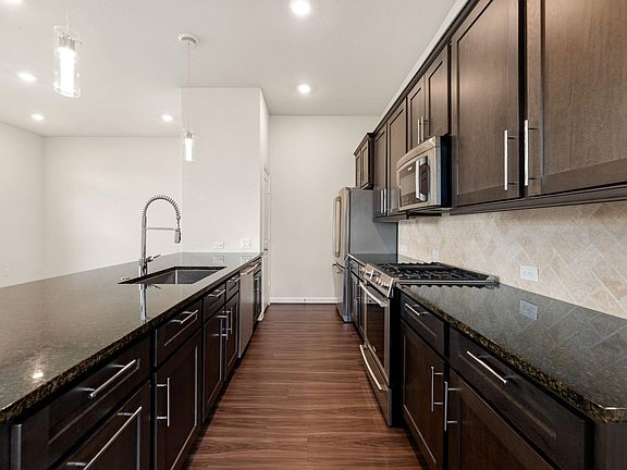 Welcome to this beautifully designed 3-bedroom, 2.5-bath home with a 2-car garage, nestled in a vibrant master-planned community known for its tree-lined streets, scenic trails, and neighborhood parks. Set on a spacious corner lot with a fenced backyard and charming stone elevation, this home blends style and functionality. The open-concept main floor features plank-style wood flooring, a welcoming foyer, and a chef-inspired island kitchen with 42” designer cabinets, granite countertops, stainless steel appliances, and a breakfast bar that flows into the dining and family rooms. Upstairs, the primary suite offers a luxurious retreat with a large walk-in shower, private water closet, and expansive closet space. Two secondary bedrooms and a full bath provide plenty of room for family or guests. Enjoy easy access to major highways, shopping, dining, and top-rated schools—all within a community designed for comfort, recreation, and convenience.