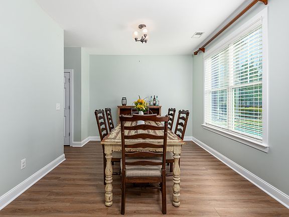 Welcome to your new home in the desirable Bolton's Landing community! This charming 3-bedroom, 2.5-bathroom residence offers a perfect blend of modern comfort and suburban tranquility. With 1,872 square feet of thoughtfully designed living space and a .20-acre lot that backs up to a wooded HOA space and easement, this one-owner property provides one of the most serene and private lots in the neighborhood.As you approach, you'll be greeted by a lovely front porch, perfect for enjoying your morning coffee. Step inside and discover a bright and open floor plan with 9-foot ceilings. The downstairs features new luxury vinyl plank flooring, creating a welcoming and pristine atmosphere.The heart of the home is the well-equipped kitchen, which boasts upgraded cabinets, granite countertops, stainless steel appliances (including a new dishwasher), and an island with bar-height seating. Adjacent to the kitchen, you'll find an eat-in area and a separate dining room with a butler's pantry hallway, making entertaining a breeze. The spacious living room is bathed in natural light from abundant windows and features a cozy gas log fireplace, ideal for chilly evenings. A convenient downstairs laundry room with a folding counter and cabinets adds to the home's functionality. The primary bedroom, located on the main floor, is a perfectly sized space. Its ensuite bathroom offers a dual-sink vanity, a walk-in shower and soaking tub. The large walk-in closet provides ample storage. Upstairs, two additional nicely-sized bedrooms and a full bathroom complete the living quarters. Aside from the new luxury vinyl plank flooring and dishwasher; other recent upgrades enhance the home's appeal, including all new toilets and an insulated 2-car attached garage with pull-down aluminum stairs leading to a floored storage space. Outdoor living is a delight with the oversized private screened back porch. A fully fenced yard, large driveway and parking area with an electric gate, offers a perfect spot for both relaxation and play. Beyond your doorstep, the Bolton's Landing community offers an array of amenities, including a pool, clubhouse, walking trails, and sidewalks. Enjoy the vibrant community spirit with neighborhood yard sales, food trucks, craft sales, and holiday gatherings. With great restaurants and grocery stores like Harris Teeter and Publix just minutes away, everything you need is within easy reach. The friendly, family-oriented atmosphere, with kids playing and neighbors walking their dogs, makes this more than just a house it's a loving place to call "home."